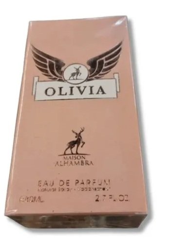 Olivia de Maison Alhambra es una fragancia de la familia olfativa Almizcle Floral Amaderado para Mujeres. Esta fragrancia es nueva. Olivia se lanzó en 2023. Las Notas de Salida son jazmín, mandarina, jengibre y azucena; las Notas de Corazón son sal y vainilla; las Notas de Fondo son ámbar gris y sándalo.